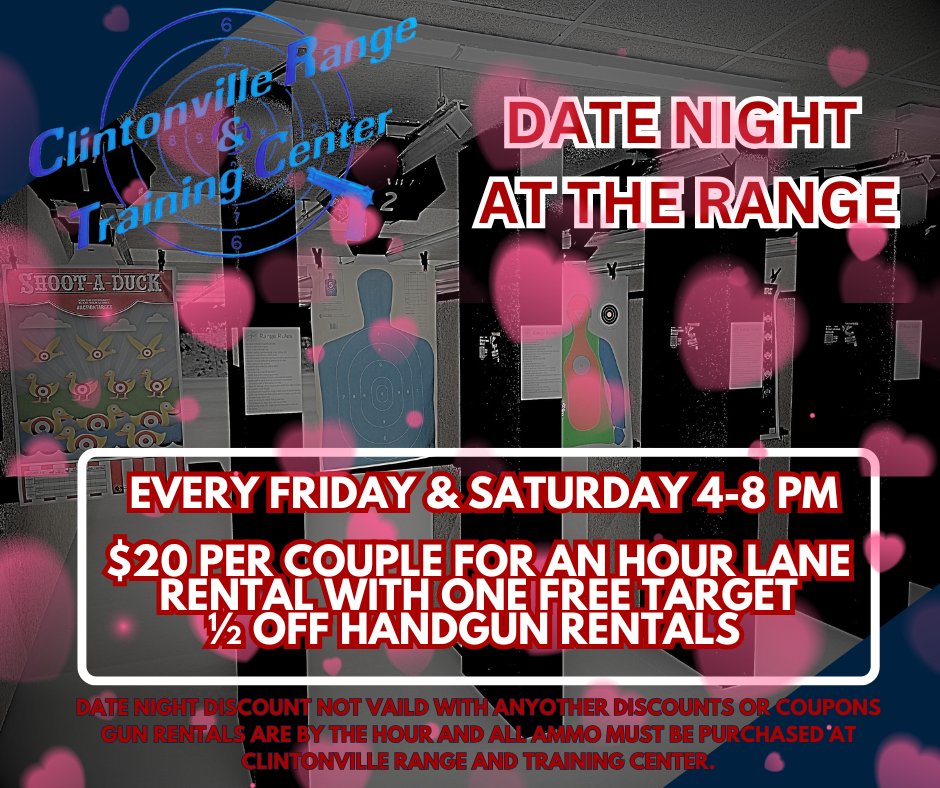 GUN RENTALS ARE BY THE HOUR AND ALL AMMO MUST BE PURCHASED AT CLINTONVILLE RANGE AND TRAINING CENTER.